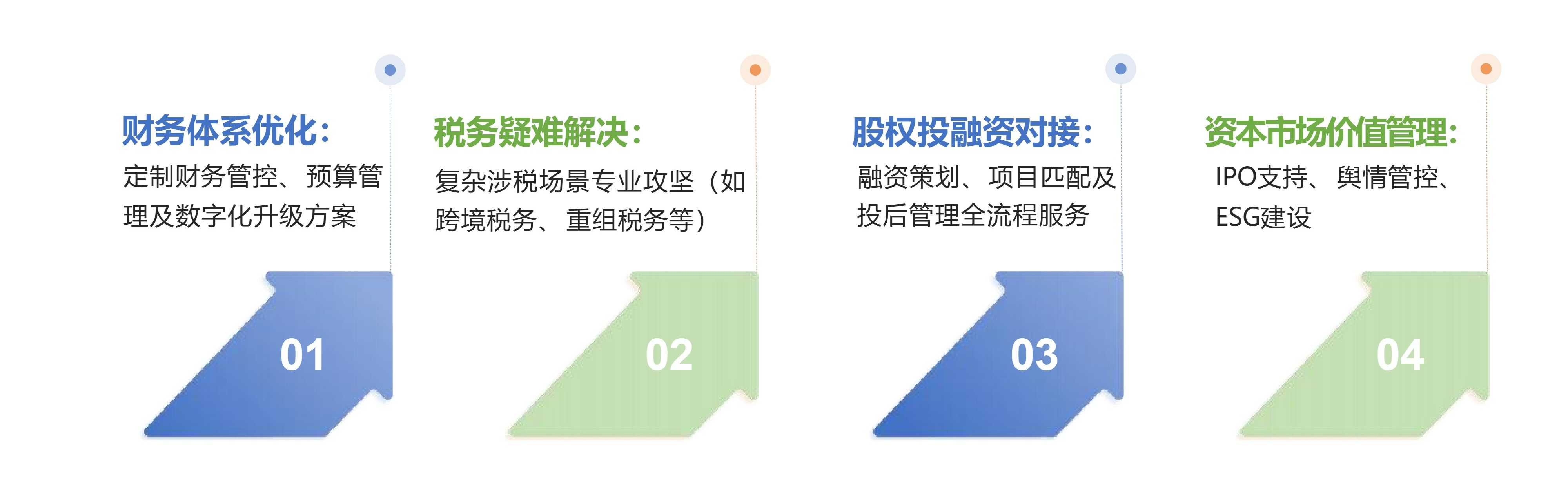 通过整合审计、评估、造价、 ESG 建设、 IPO 支持、舆情管控、财税咨询等多元场景 ,构建专业服务 + 资本对接 +产业赋能的生态体系。
